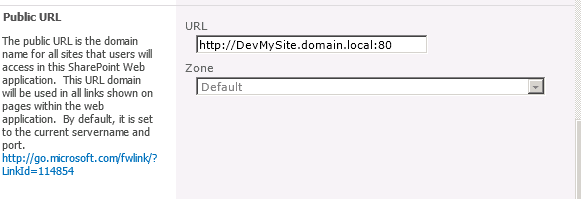 The My Site host Web app had been created on port 8080 with the URL http://ServerName/:8080/