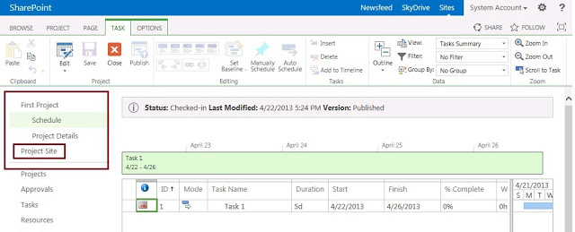 But it comes as a pleasant surprise in PS2013 that Project Sites are now more seamlessly connected with PWA. Though still the distant feeling exist, but was overcome to some extent to give user a more connected feel of Project site with their projects.