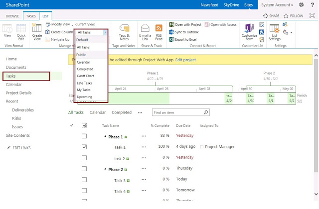 However this distance some how comes in a way while convincing users to use project site associated with project to manage artifacts such as documents, issues and etc. One of the common request received in this case was, how to show projects tasks or project status on project site? and since there is no OOB way of achieving this in PS2010, then you have to come up with all these brilliant ideas of developing different custom solutions to accommodate such requests.