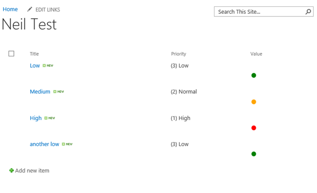 Save the page view, preview in a browser and voila, a colour coded column in SharePoint 2013.