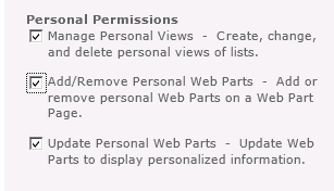 Unticking the last 2 items and the ‘Personalize this Page’ menu item is removed, but the users still have the ability to create personal views on lists and libraries, removing ‘Manage Personal Views’ will remove this option as well.