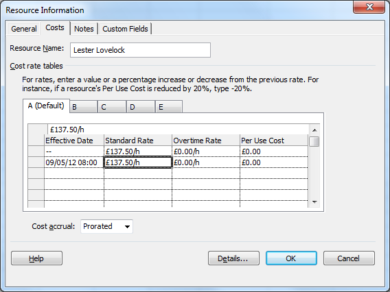 This will open the selected resources in Microsoft Project. To update the resource rate, double click on the resource and click on the Costs tab. The Effective Date will contain the time as well as the date. Ensure that the time is set to the same as the Enterprise Calendar for the start of the day.